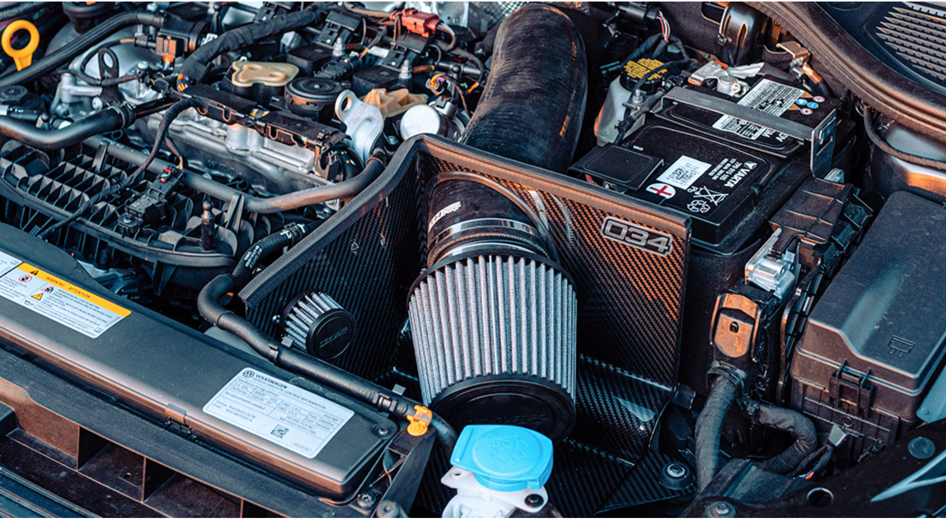 The 034Motorsport S34 Carbon Fiber Intake is one of the highest performing intake systems available for EA888 Gen 4 MQB Evo engines. The full kit includes not only the carbon fiber airbox but also the critically important turbo inlet elbow and silicone inlet hose, allowing the entire system to function as one optimized airflow solution all the way to the turbo.