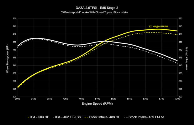 - 034 X34 4” Intake w/4” inlet: 503 WHP / 462 WTQ
