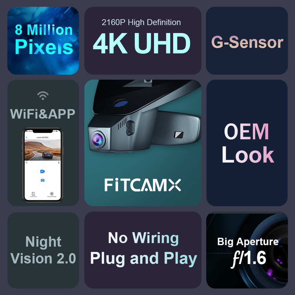The FitcamX windshield camera is a vehicle-specific, CE-certified, and easy-to-install camera that allows you to effortlessly record traffic events. The bright, high-quality optics deliver impressively sharp and clear images even in demanding conditions.