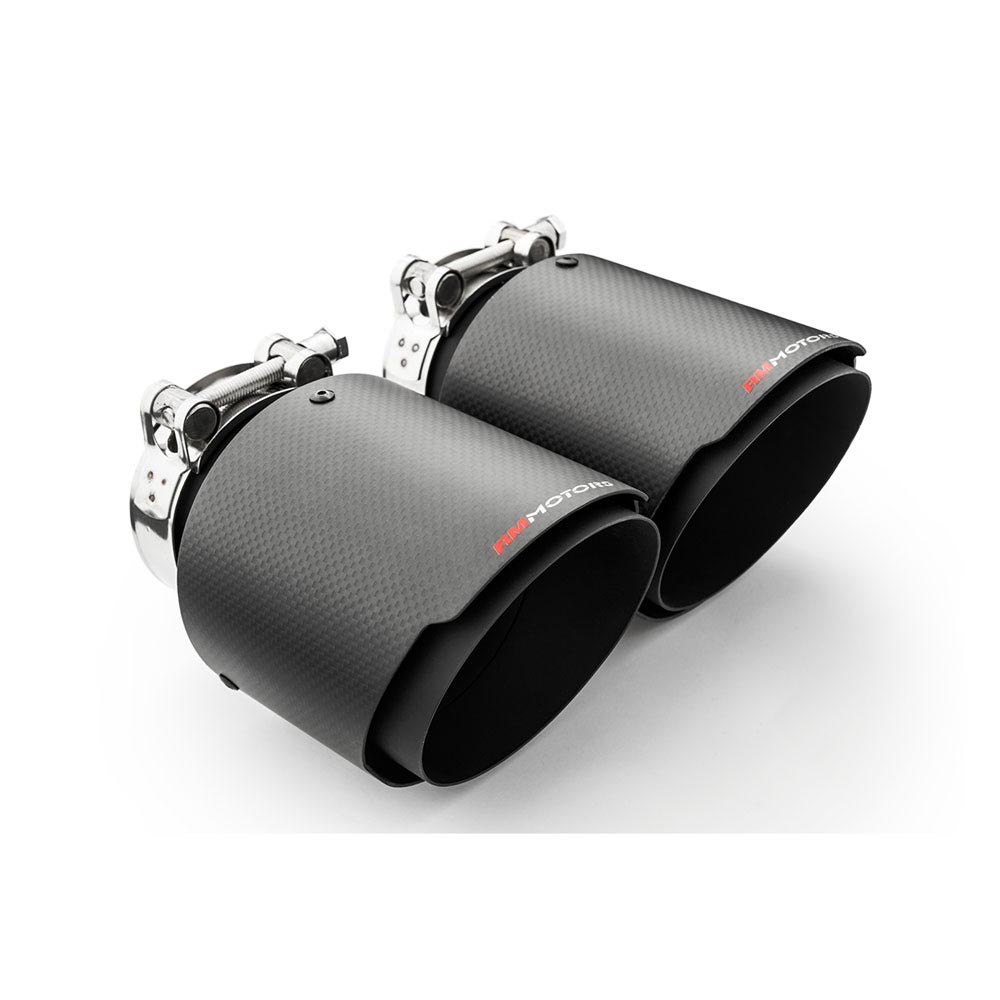 Enough with the cheap ***baba Akra replicas. Choose authentic RM Motors carbon fiber tip to improve the looks of your exhaust system. These tips come with universal fitment, and convenient clamps to fit over the exhaust pipe without welding, drilling or other nuisance of that sort.