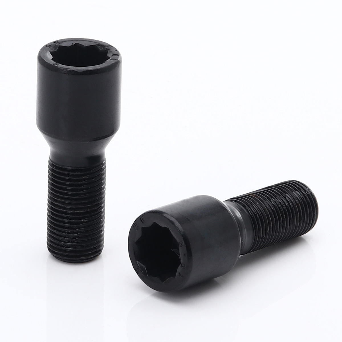 Wheel bolts manufactured by JR Wheels are an affordable choice for securing alloy rims, available in both polished silver and black finishes. The internal socket design protects your rims from scratches caused by tool sockets and also functions to some extent as a locking bolt – making it more difficult for a thief to remove without the included star-shaped key.
