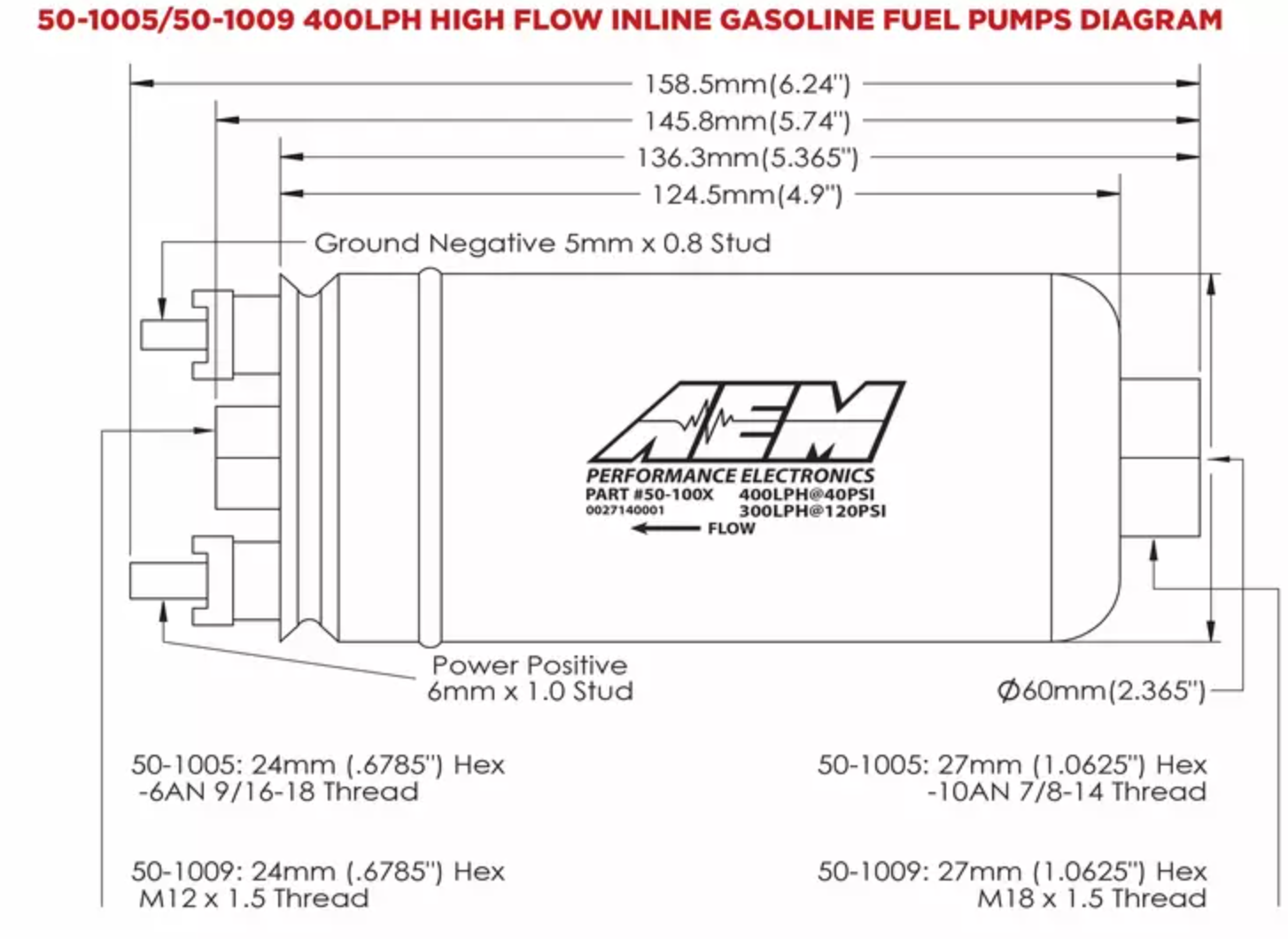 AEM 50-1009 on erittäin korkean tuoton polttoainepumppu, joka soveltuu bensalle sekä etanolipolttoaineille kuten RE85. Tämä on yksi suosituimmista virityspumpuistamme hyvästä syystä: se riittää todella korkeisiin tehotavoitteisiin myös etanolilla ja toimii luotettavasti vaativissa kokoonpanoissa.