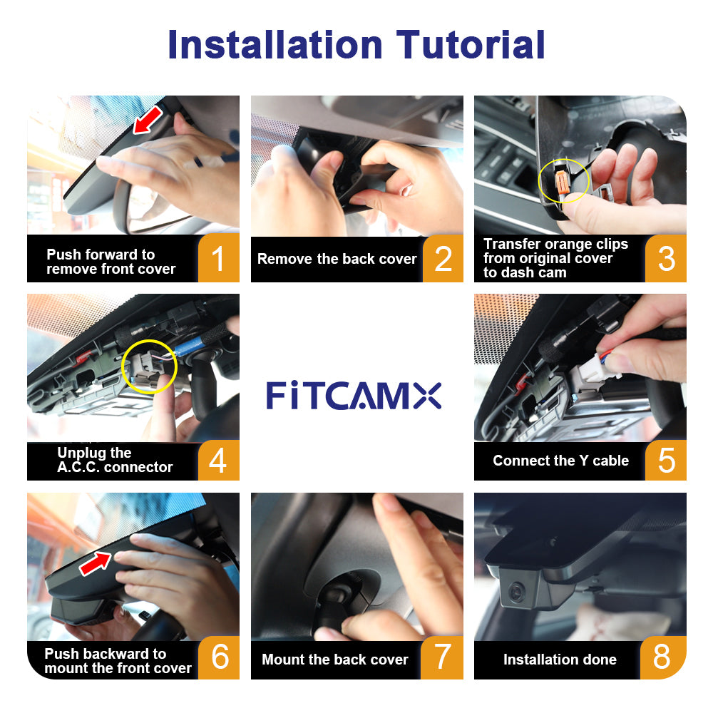 Sarjan etukamera asentuu huomaamattomasti alkuperäiseen paneeliin taustapeilin taakse, auton omiin johtoliittimiin napsauttaen ilman johtojen vetoa, sähkötöitä tai roikkuvia piuhoja! Sarjassa toimitetaan korvaava sisustapaneeli autosi oman tilalle, joten asennus on myös helposti purettavissa jälkiä jättämättä esim. autoa myytäessä.