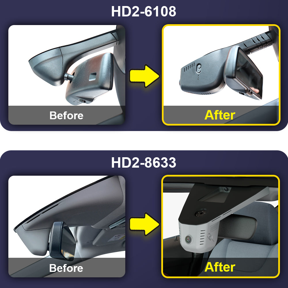 Sarjan etukamera asentuu huomaamattomasti alkuperäiseen paneeliin taustapeilin taakse, auton omiin johtoliittimiin napsauttaen ilman johtojen vetoa, sähkötöitä tai roikkuvia piuhoja! Sarjassa toimitetaan korvaava sisustapaneeli autosi oman tilalle, joten asennus on myös helposti purettavissa jälkiä jättämättä esim. autoa myytäessä.